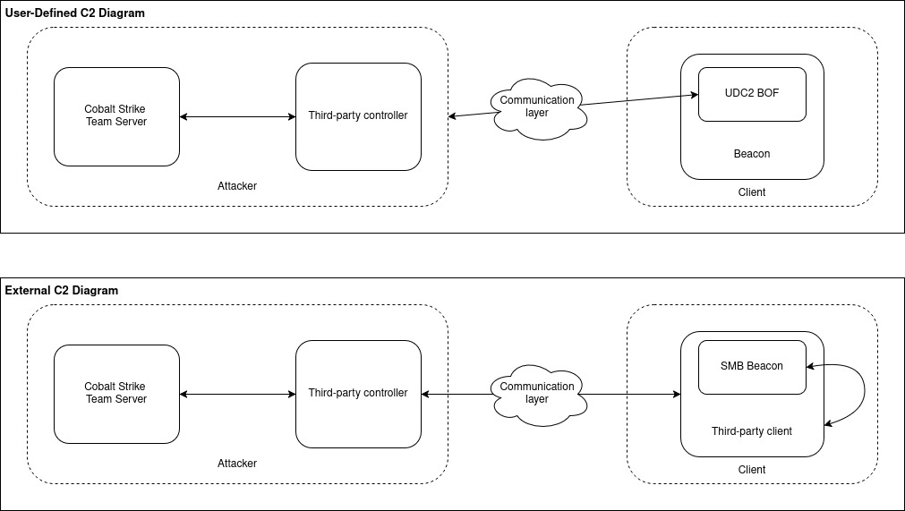 User-Defined C2 (UDC2) was introduced as the evolution of External C2, specifically designed to address many of these shortcomings. UDC2 is significantly lighter and only requires the development of a Beacon Object File (BOF) rather than a full standalone client.