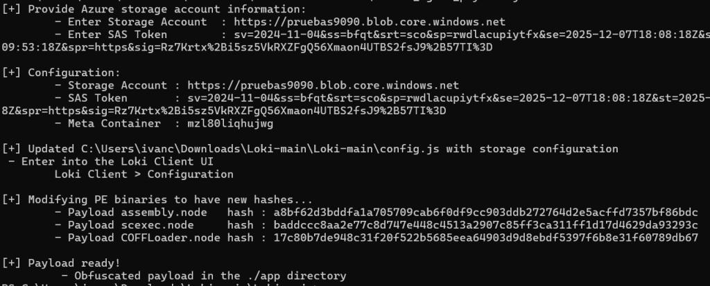 Using this C2 server is very simple, you just need to download the server (.exe) and configure it using an Azure account, as communication will take place through a Blob.