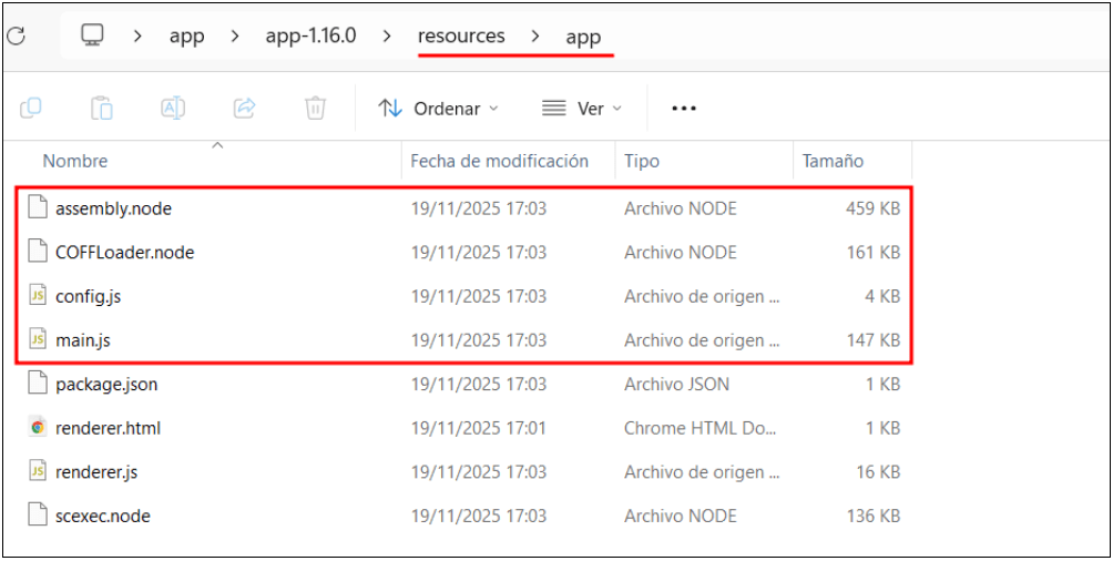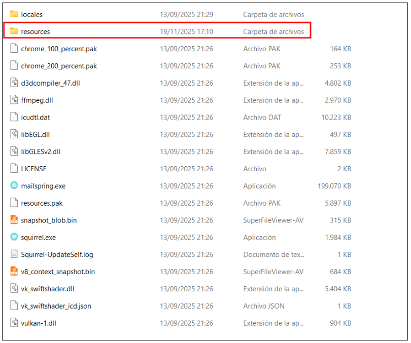 Therefore, the application was downloaded, and the contents of the resources/app folder were deleted.